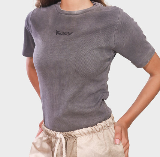Disclaimer T-shirt Gray in Rib Garment Dyed Black
